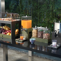 Per i momenti di servizio self-service, la sezione Buffet propone vassoi refrigerati, contenitori per cereali, brocche e accessori per allestimenti funzionali e di design, sempre in pronta consegna.
