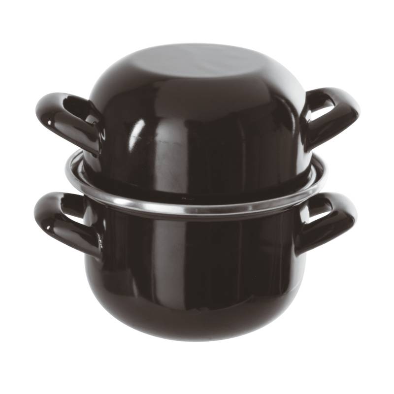 Cocotte per molluschi composta da una casseruola Ø 20 cm h 13 cm e da una casseruola che serve da coperchio per servire e per riporre i gusci. Capienza 3,3 L