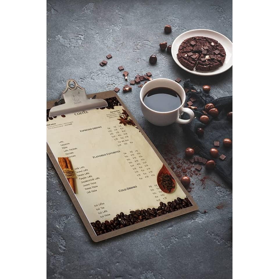 Porta Menu ClipBoard A4 di Securit in legno pressato con robusta clip in acciaio inox.