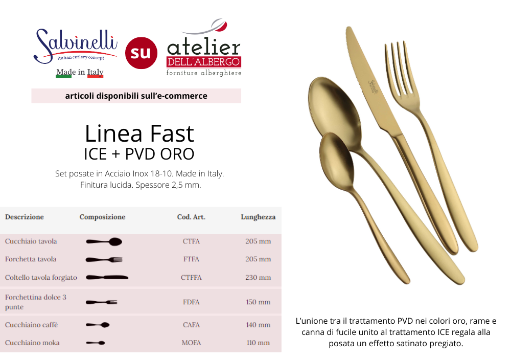 Cucchiaino caffè di Salvinelli Linea FAST, lunghezza 140 mm, Trattamento ICE + PVD colore ORO