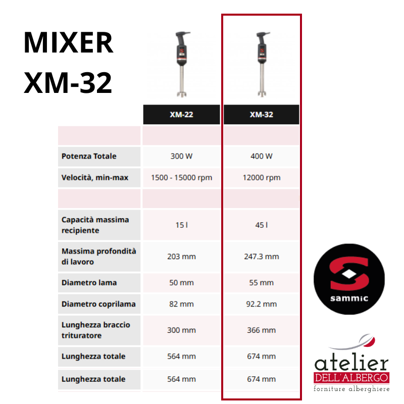 Mixer professionale XM-32 di Sammic, Trituratore-frantumatore professionale, 400 W.