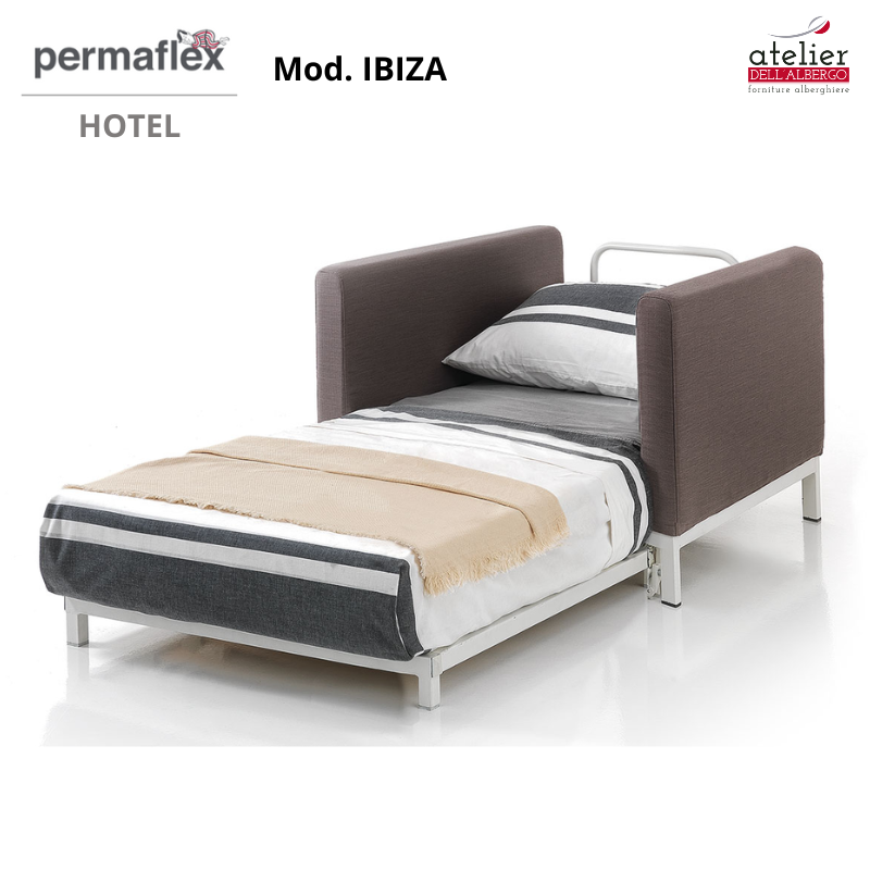 La più piccola della famiglia IBIZA si fa spazio nella gamma di poltrone letto per il suo alto livello di riposo che riesce ad offrire. Il pianale rigido e il suo materasso molto performante viene apprezzato anche da una persona adulta. La sua linea moderna fa si che si possa inserire in moltissimi contesti d’arredo. La sua meccanica semplice la rende pratica, rapida e molto robusta. Ibiza rappresenta la soluzione ideale per appartamenti turistici e residence che accolgono ospiti con l’esigenza di spazi pratici e facilmente vivibili.