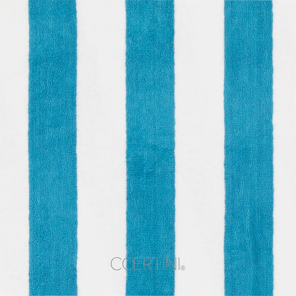 Modello RIVIERA, misure 90×185 cm, peso 420g/mq, colore LAGUNA, rigato bianco e azzurro