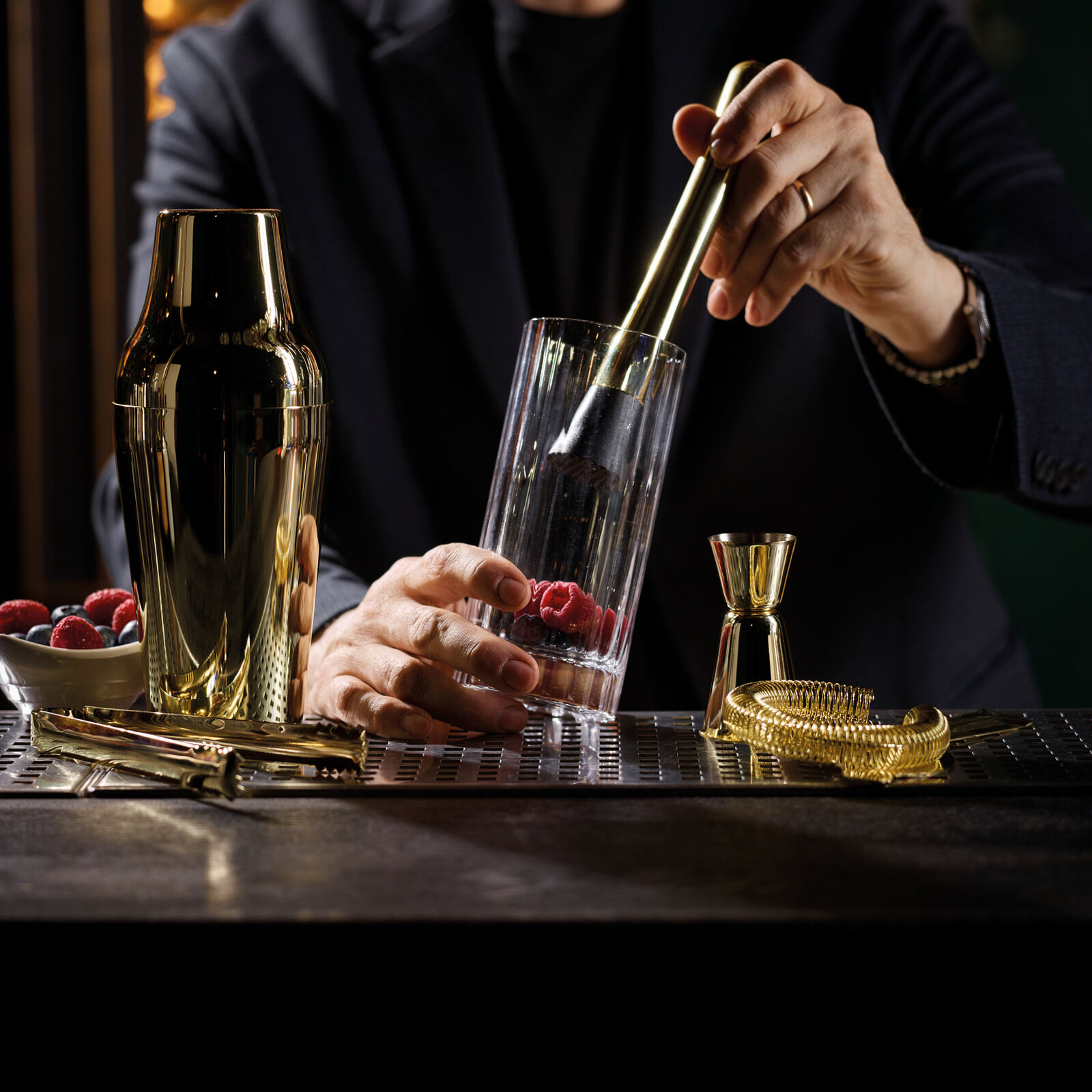 Molla Ghiaccio Cm 16|Inox Gold Look|41518G12 Colino Cocktail Ø 9 Cm|Inox, Oro|41603G00 Shaker Parisian Cl 70|Inox Gold Look|41461G07 Misurino Cocktail Ml 20/40|Inox, Oro|41604G00 Pestaghiaccio Cm 20|Inox Gold PP|41503G21