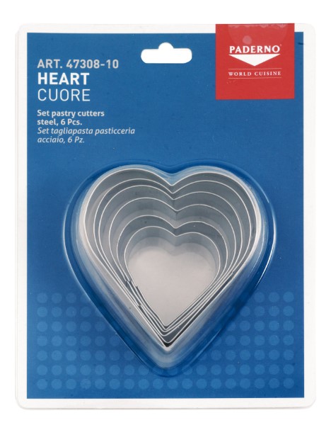 Tagliapasta tema San Valentino, Cuore misure a scalare da ø 10 cm a scendere, totale 6 pz, h 3 cm