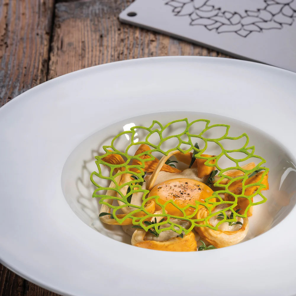 Tappetino per Stampo decoro 3D Foliage by Paolo Griffa di Pavoni, in silicone da 3 impronte, ø 115 mm h 1,5 mm.