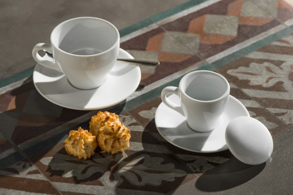 Il servizio da caffè e tè della linea Vesuvio destinato al mondo della ristorazione è realizzate in pregiata porcellana.