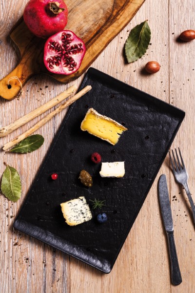 Piatto Rettangolare in porcellana color nero di Tognana modello Vulcania Black, Lunghezza 33,5 cm x Larghezza 20,5 cm.