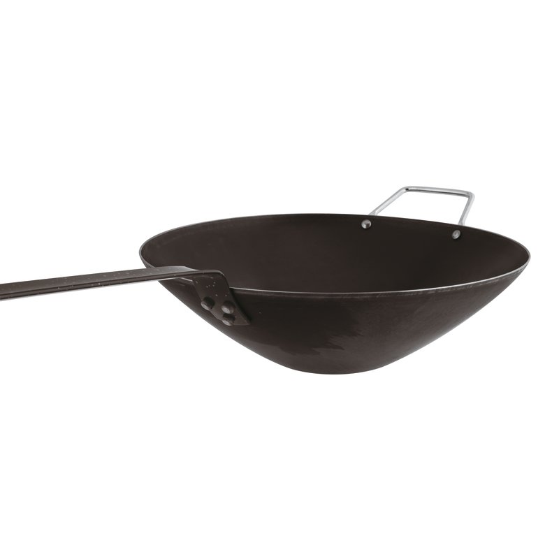 Wok pan ferro con manico e maniglia aggiuntiva, ø 32 cm h 10 cm, di Paderno